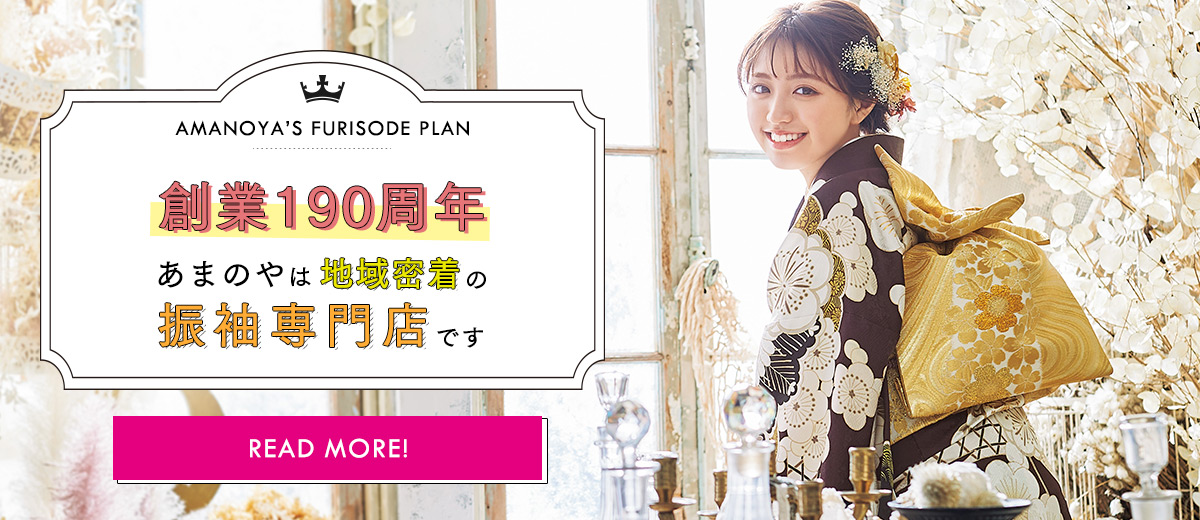一生に一度、二十歳のお祝いは振袖専門店"あまのや"にお任せください。