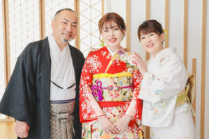 あまのやの実績では、4:4:2の割合です。ご両親からのプレゼントとして振袖を何度も着て楽しみたい購入派、流行柄で今の自分を表現したいレンタル派、お母様の振袖を思い出重ねして帯や小物を変えるママ振りアレンジ派、どれが正解でもありません。ご要望やご希望に応じて、ご家族ごとに対応いたします。
