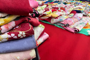 実際に試着をしてみることが一番です!あまのやの人気色ベスト3は、①赤、②白、③緑ですが、人気の色は分散化傾向です。同じ赤でも色調や柄によってイメージが全く違います。合わせてみると意外な色が似あったりするので、実際にお店で合わせてみるのが一番です。