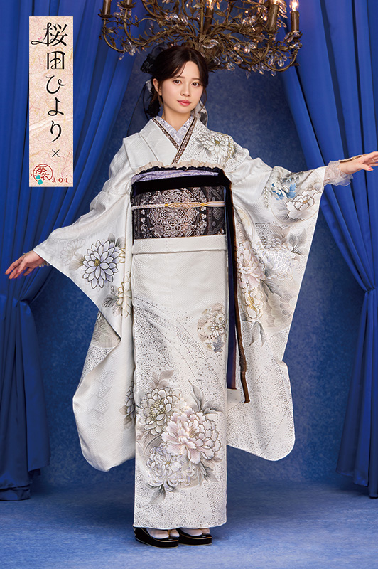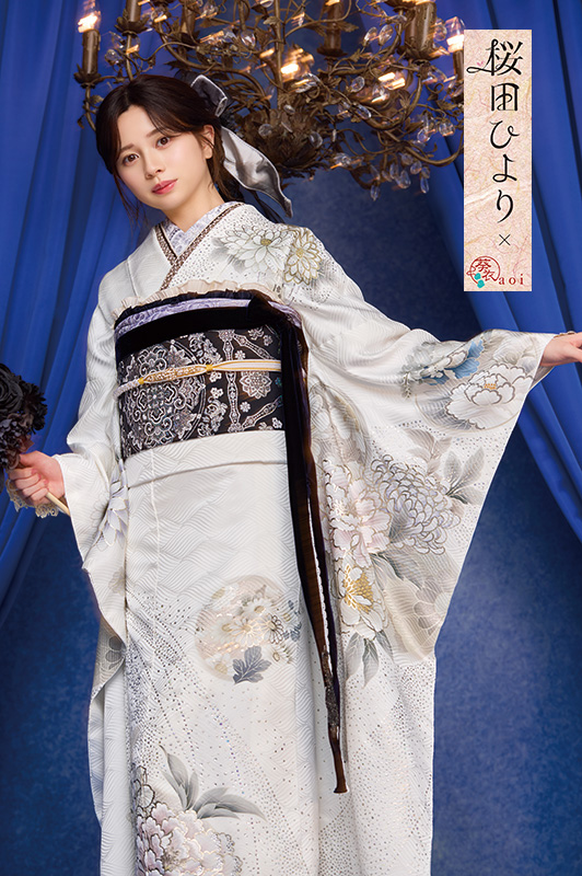 桜田ひよりちゃんが着こなす“aoi(葵衣)”の振袖♡ハタチの記念は可愛く残そう。*写真の帯・小物は撮影用のイメージ商品です。