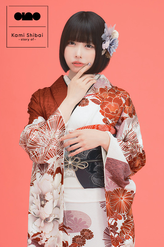 anoちゃんが着こなす紅白で晴れの成人式にはぴったりな一着。古典的な可愛さと今っぽさを組み合わせたツートーンのファッショナブルなコーディネートを楽しんで。