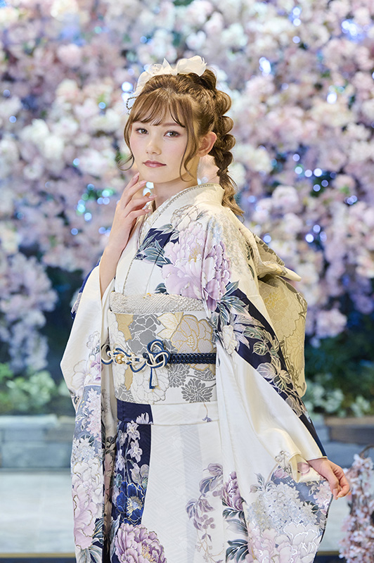 トレンドをしっかり押さえた”Mohala”の振袖でオシャレに成人式を迎えちゃおう!*写真の帯・小物は撮影用のイメージ商品です。