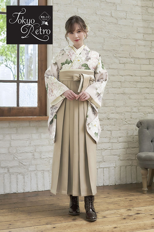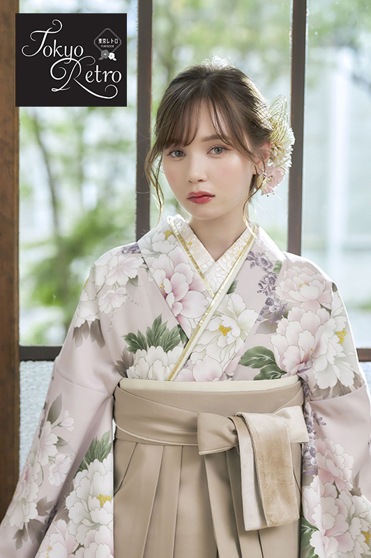 マーシュ彩ちゃんが紹介する東京レトロの卒業式袴!人気の白×ベージュカラーで可愛くキュートに。*写真の帯・小物は撮影用のイメージ商品です。
