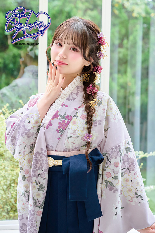 モデル、インフルエンサーとしても注目を浴びる「さくら」プロデュースによるくすみカラー卒業式の袴レンタルセット。シンプルで上品なデザインは卒業式や式典、成人式にぴったり!落ち着いたピンク×紺の色合いとミニマリズムデザインで注目を集めます。