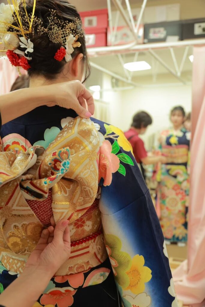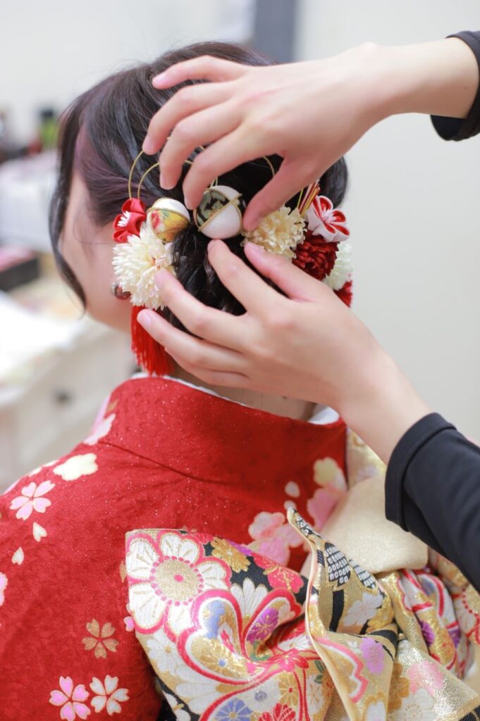 成人式当日のお着付けやヘアメイクも、あまのやでご成約いただいた方はお任せください!