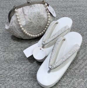 草履とバッグどちらもラメが入っているのでキラキラして可愛らしいデザインになっていてオススメです!