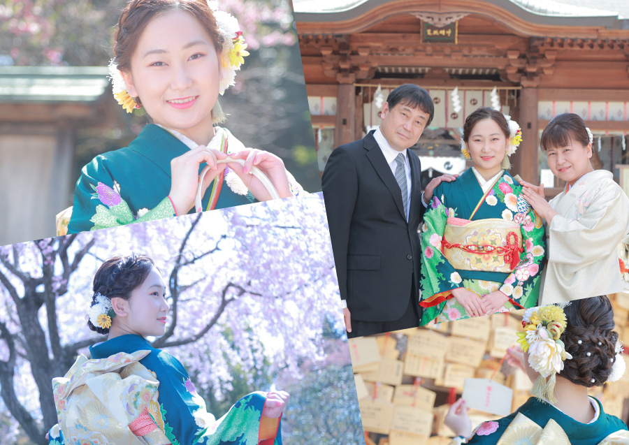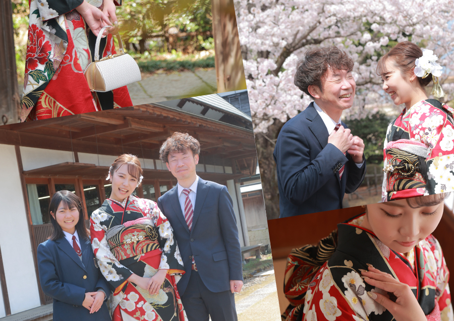 「ロケーション撮影は、娘が楽しそうにしていたので良かったです。一人娘なので、成人のときは私もきもの姿で撮ろうと決めていました。照れもありましたが、親子三人で写真撮影ができて楽しかったです。」