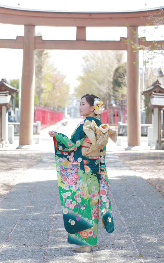 神社の和の雰囲気と振袖は、とても相性が抜群(*^^*)美しい境内で写真撮影ができます。