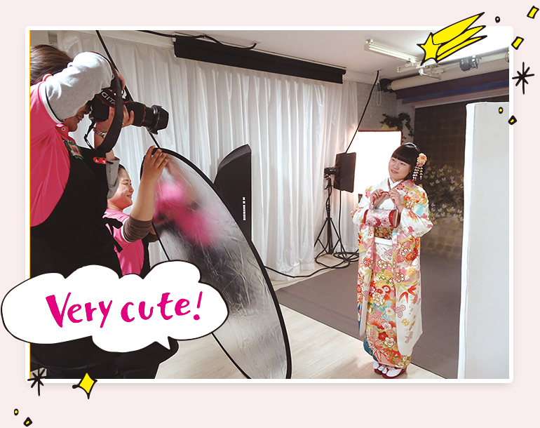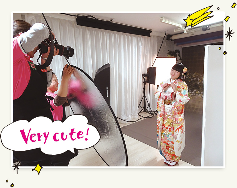着物に慣れていないお嬢様でも快適にリラックスした環境で撮影をしていただけます。
