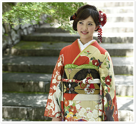 未婚女性の第一礼装とされる振袖には、成人式以外にも様々な着用シーンがあります。例えば振袖は格式が高いので「結婚式または披露宴」に招待された時に着用することで式の格調が高くなり主催者に喜ばれます。また「お見合い」や「結納」などの式典や儀式の際に独身の女性が着るものとされています。「卒業式」では袴と合わせてイメージ・チェンジ!その他にも各種パーティーや祝賀会でも振袖は着用でき「新年会」など日本らしい式典や「祝賀会」などのイベントでも見られます。更には袖を切ることで、気軽に着られる「訪問着」にすることもできちゃいます!