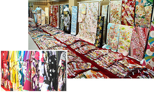 栃木県最大を誇る振袖のラインナップ。売場面積は約300坪と通常の振袖専門店の約5倍の面積があります。振袖は伝統的なタイプからモダンなタイプまであらゆる色味・柄の種類があり、お気に入りの一枚を見つけることができます。