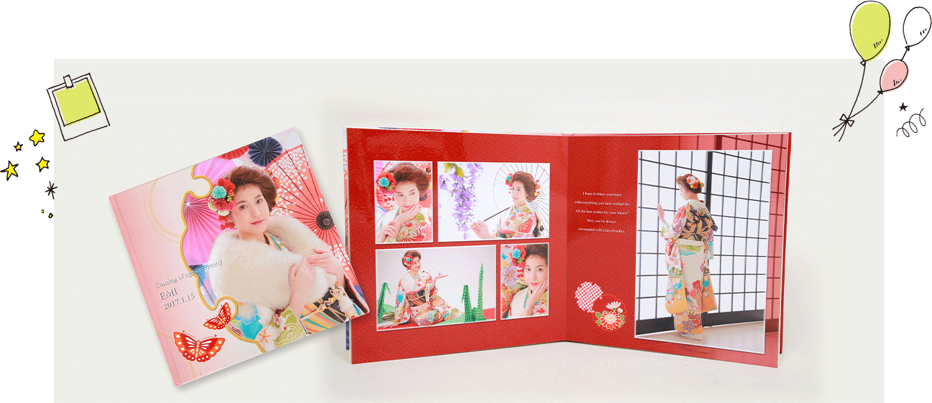 成人式に行かなくても二十歳になった記念を写真に残すことで、一生の思い出をつくるプランをご用意しております。