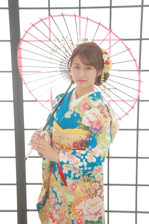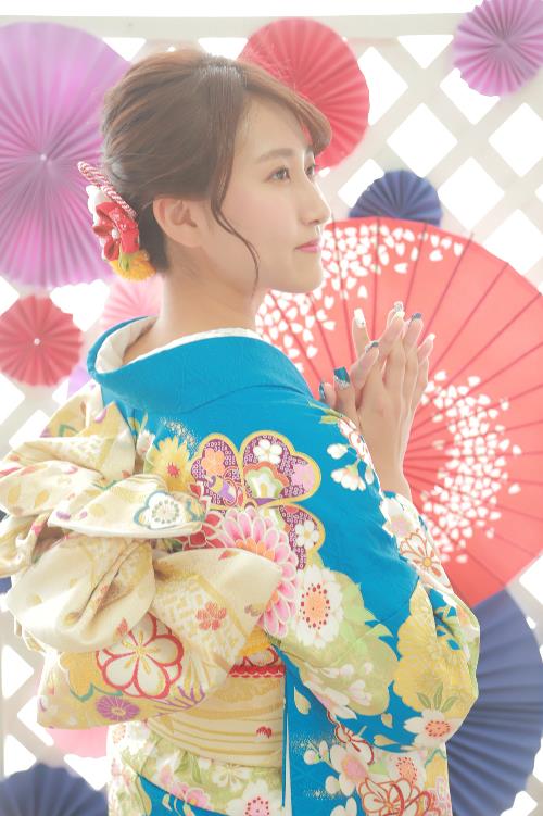 青の振袖で迎える成人式!定番スタイルの撮影も今どきなスタイルの撮影もお任せ♪