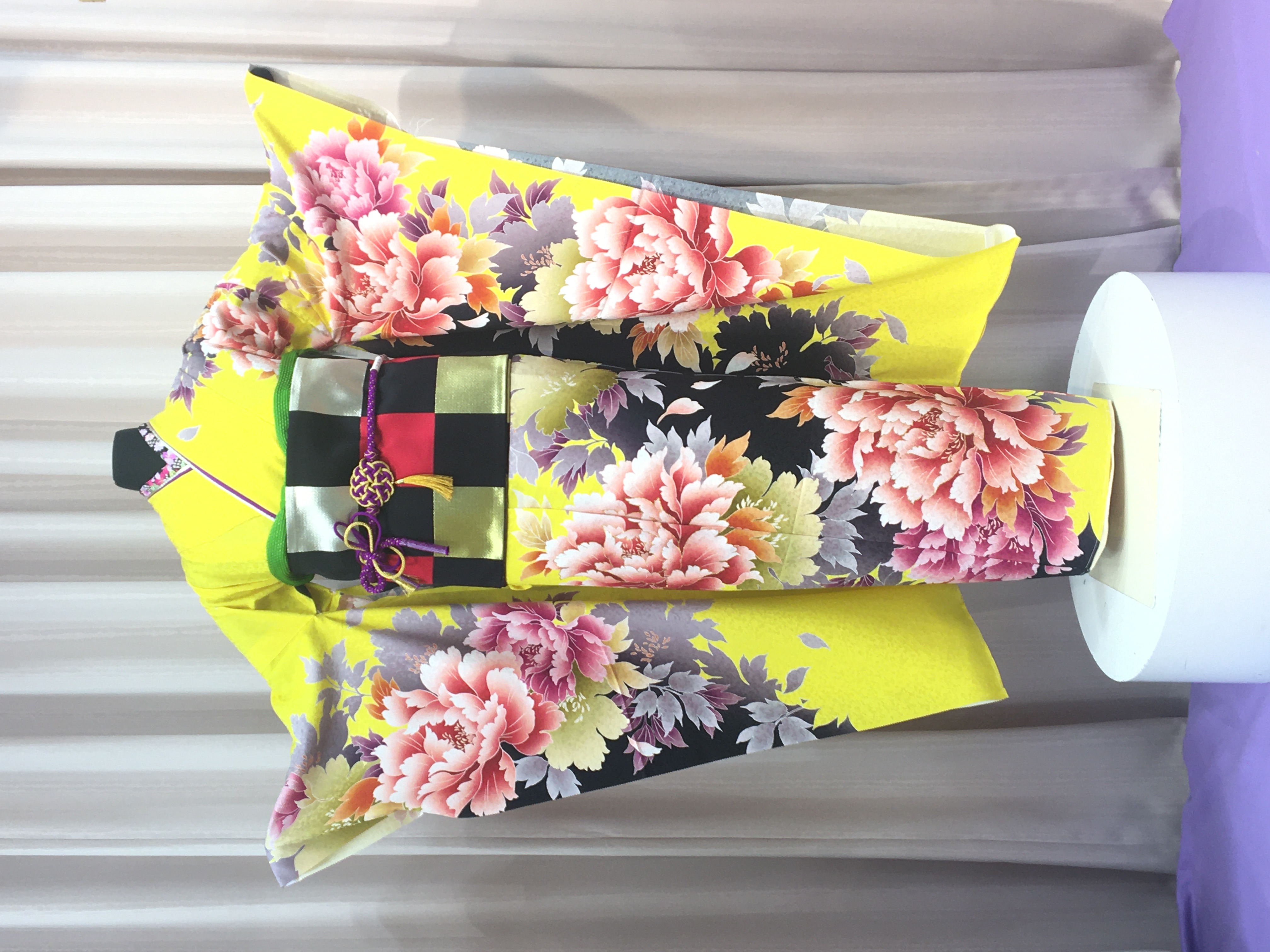 ビビットな黄色に大柄の牡丹のお花が個性的!