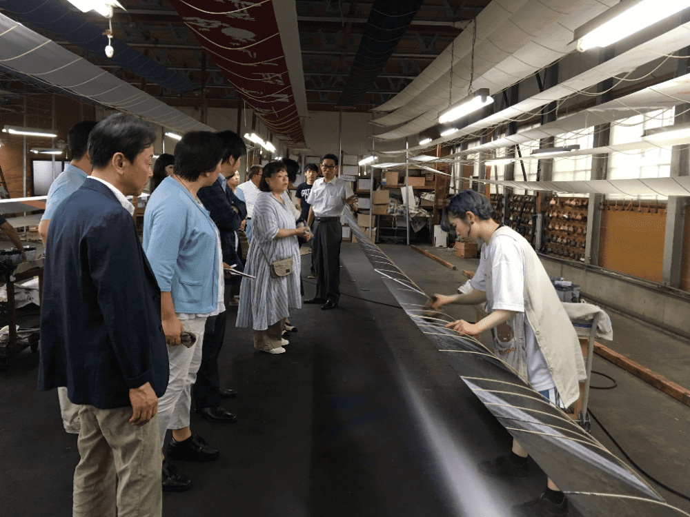 (ちなみに、こちら↓の写真は”あまのや”社員が振袖を作る工房に勉強をしに行ったときの様子です。お客様に、きちんと振袖の魅力をお伝えできるように、みんなで作り方やその技術を勉強してきました!)