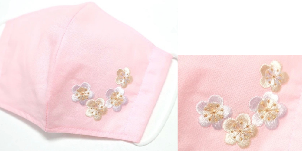 控えめなピンクと白のお花が可愛らしい刺繍マスク!