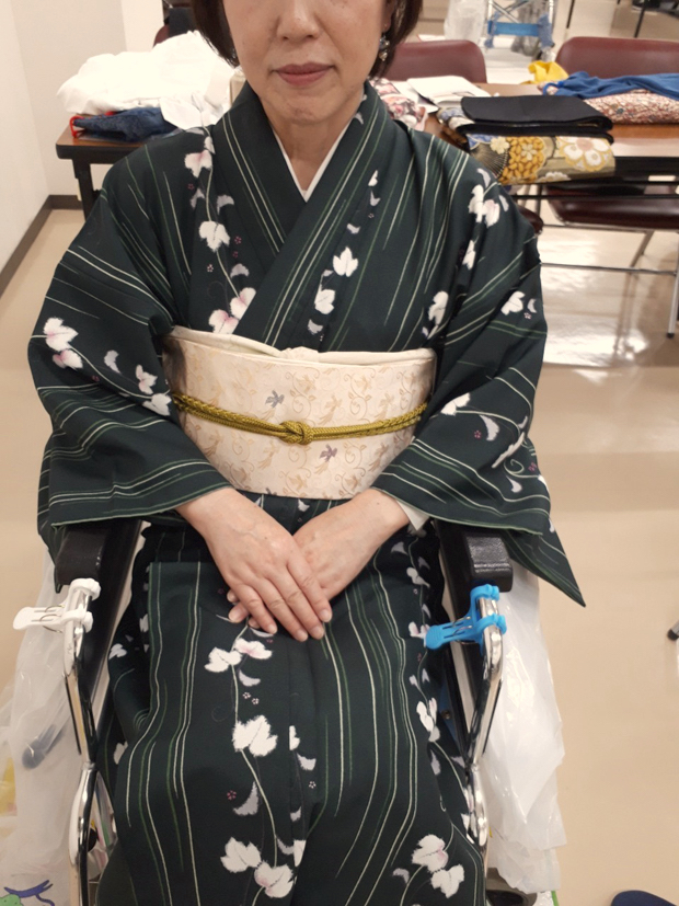 車いすでの生活をしている方にも着物を楽しんでいただきたい!という気持ちでお手伝いしています。