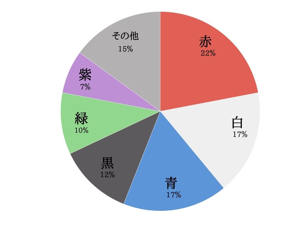 赤22% 白17% 青17% 黒12% 緑10% 紫7% その他15%