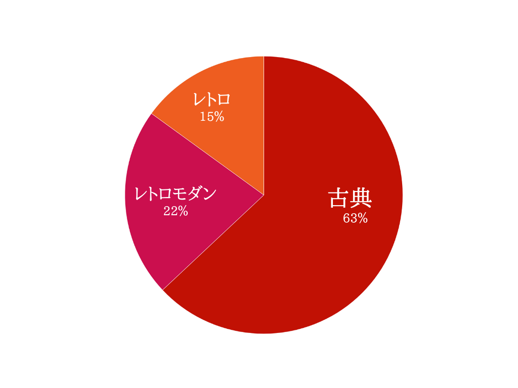 古典柄 63% レトロモダン柄 22% レトロ柄 15%