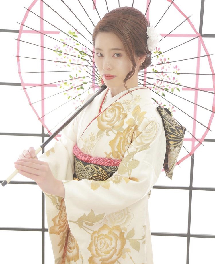 かっこいいモード系の白の振袖も、薔薇や蝶などの大輪の柄が印象的で、これまた違った華やかさがありますね。