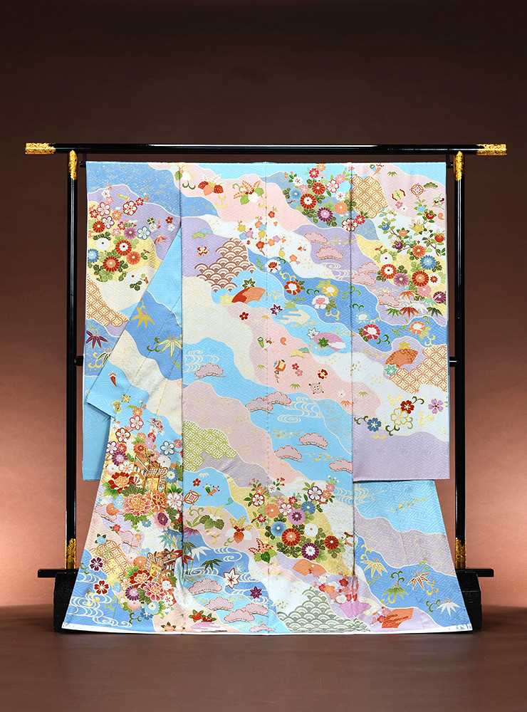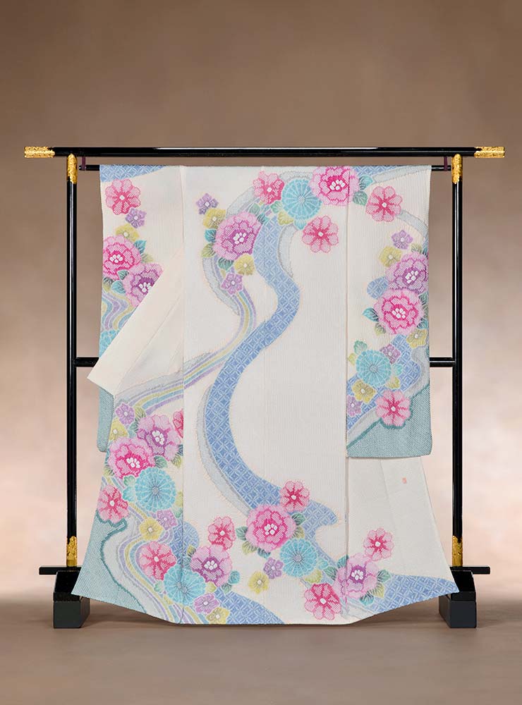 染めと織りのきもの総合メーカーとして高く評価される新潟県十日町市の創業120余年の老舗「吉澤」の本格手描友禅。