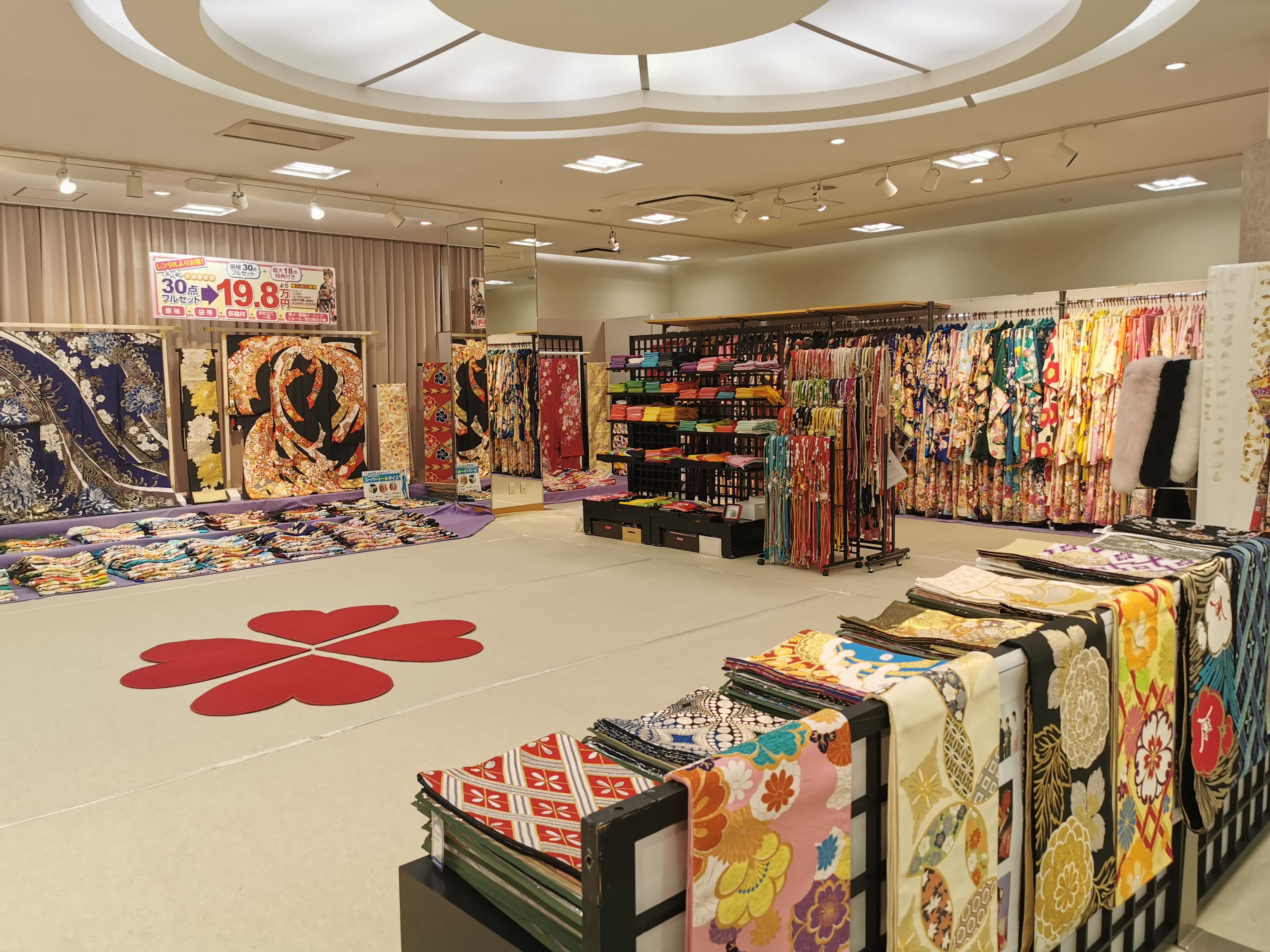 A. お見積もりや試着を無料で点検できる点と、お手入れから前撮り、成人式当日までお任せできる点が当店の特徴です!