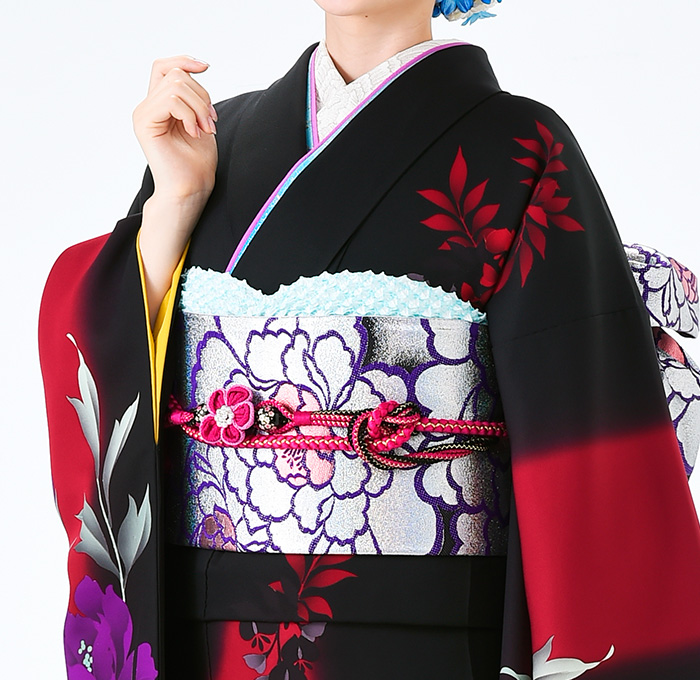帯周りの調和をとりながら、黒の振袖と帯とのメリハリのあるコーディネートになりました。とっても素敵です!