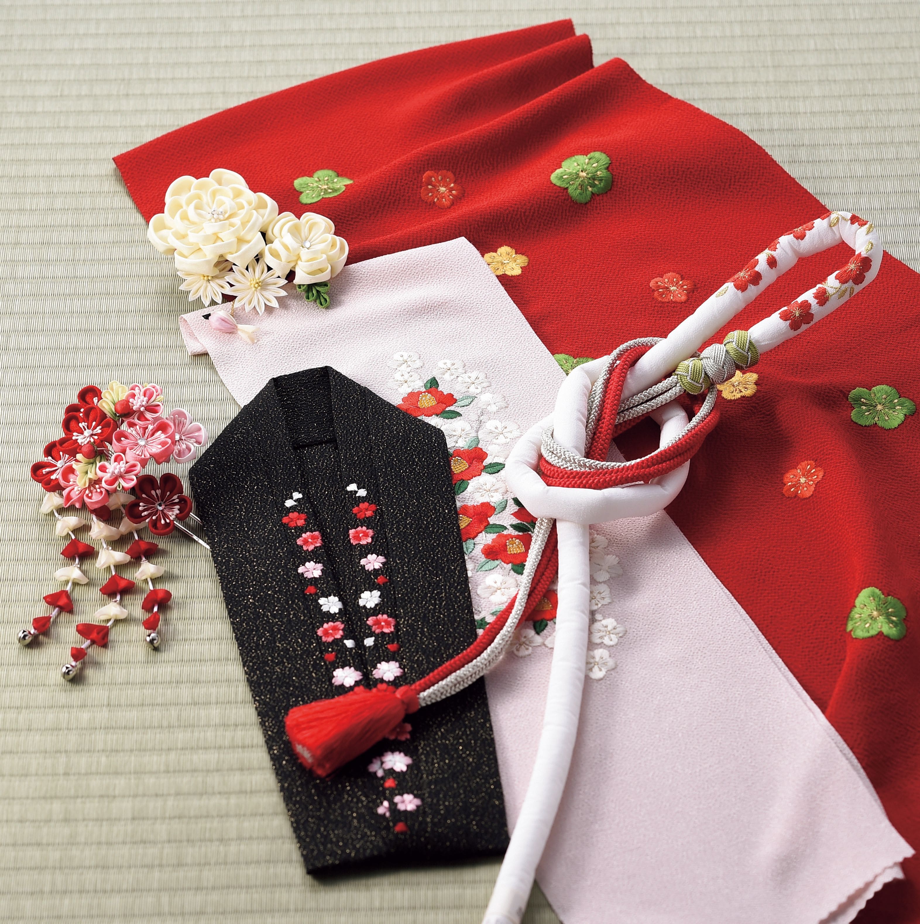 重衿、帯揚げ、半衿、長襦袢、帯締め、袋帯、バッグ、草履、髪飾りなど最低限でも9アイテムと言われています。