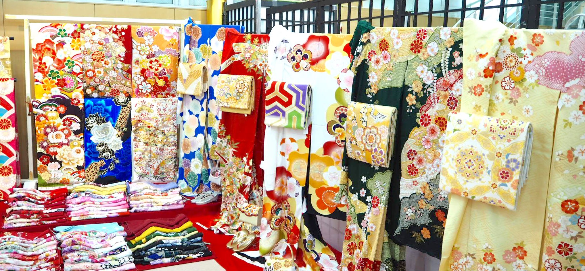 あまのやでは、王道の古典柄から、かわいらしい和モダン柄、ファッショナブルなモダン柄、今流行中の無地の振袖まで多様な柄と色の振袖を常時1000枚をご用意。