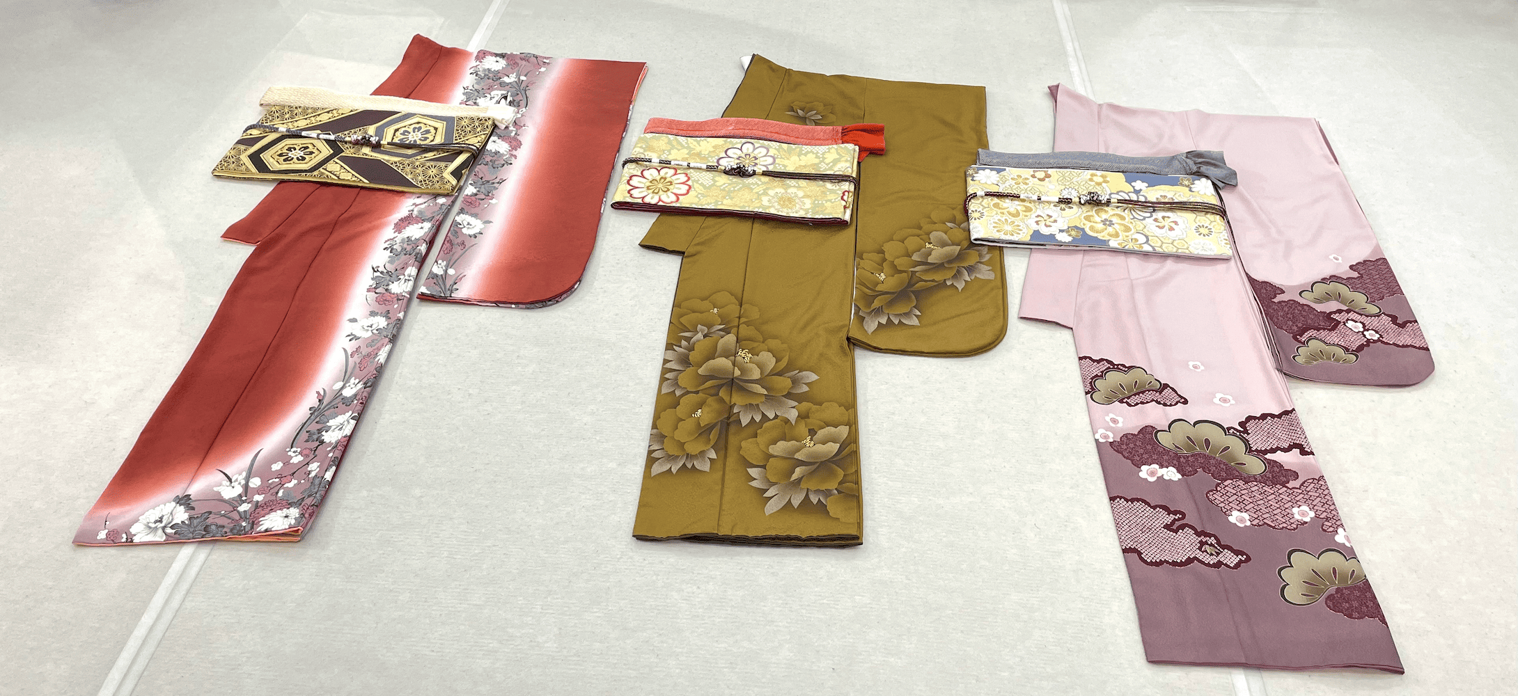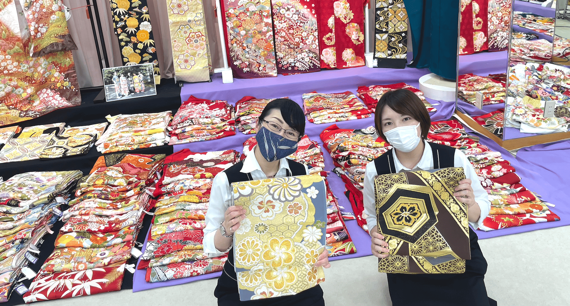 あまのやでは、王道の古典柄から今流行のくすみカラーの振袖、無地振袖まで常時1000枚をご用意。