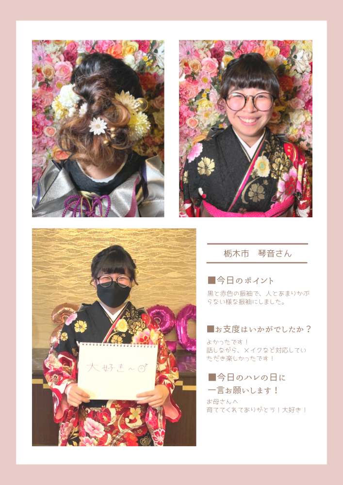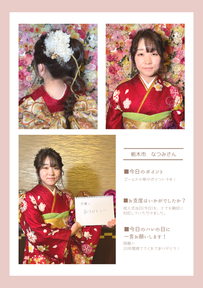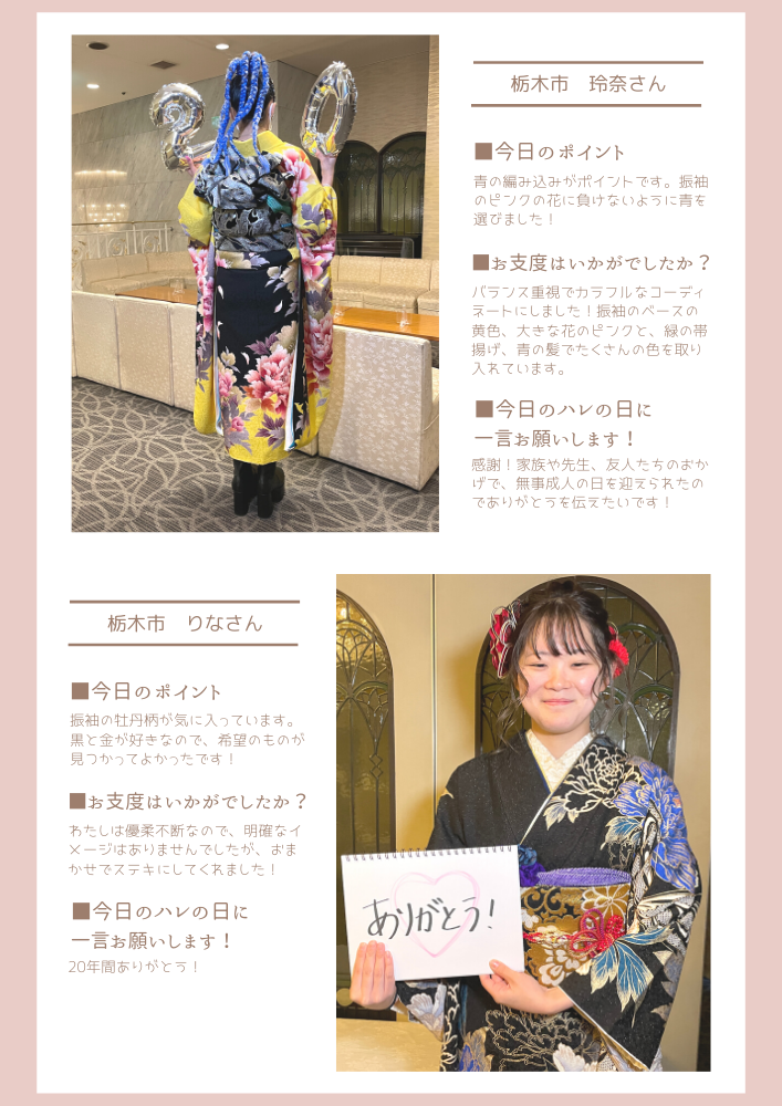 成人式当日レポート | 栃木県小山市栃木市下野市 茨城県結城市古河市八千代町野木町の振袖新成人インタビュー