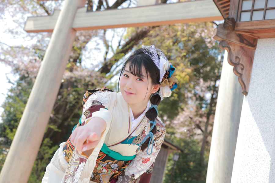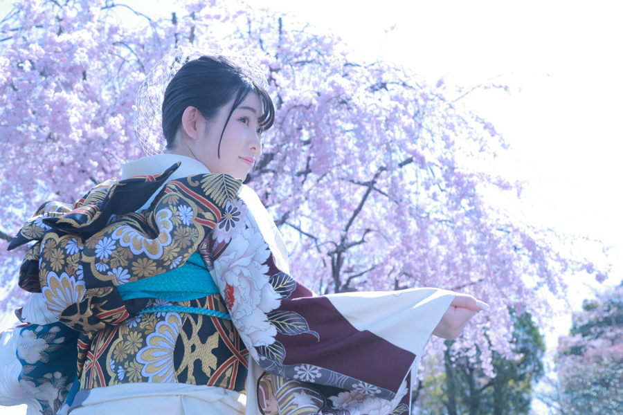 全体的に青くシックな雰囲気にすることで桜や振袖がより映えるというのも面白い写真になりますね!!