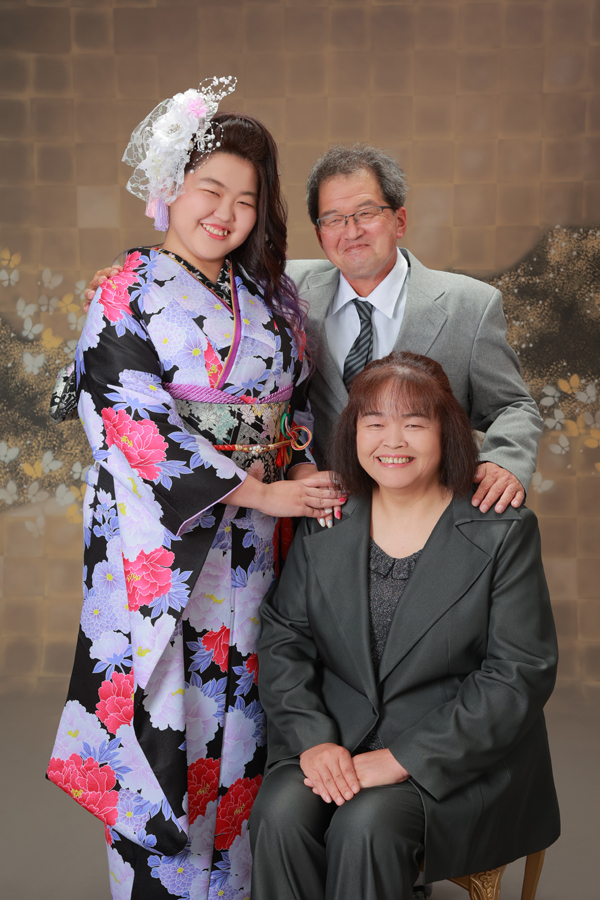 前撮り時にご家族写真も撮影いたしました。お父様、お母様もお嬢様の成人を祝い、子どもの成長を喜んでいる様子がうかがえる素敵な笑顔ですね。子どもが成長するにつれ家族写真を撮る機会が減ってきますよね。前撮りを機に久しぶりの家族写真はいかがですか?