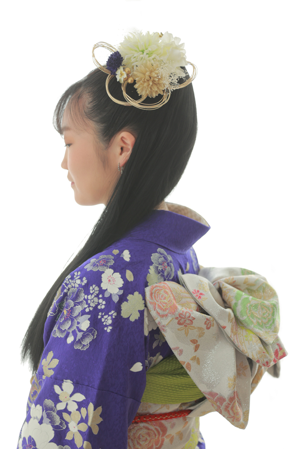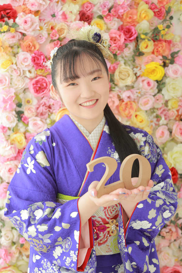 お次に、紫の振袖を着られたお嬢様をご紹介いたします!