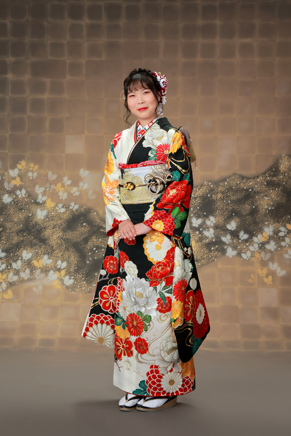 その場がパッと華やぐような存在感のある振袖なので、会場で目立つこと間違いなし!!