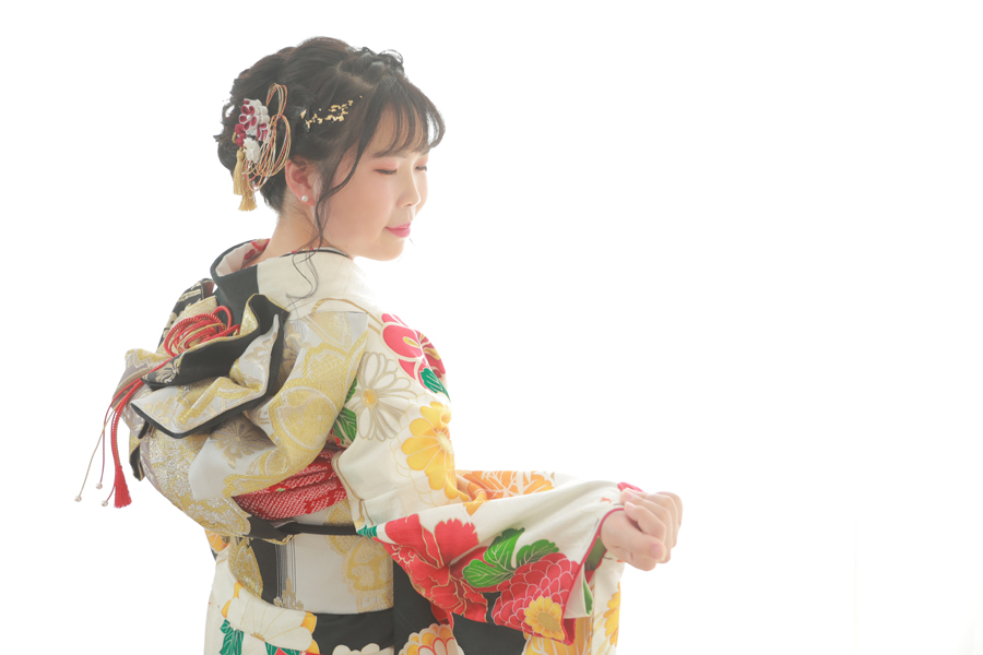 振袖の色や柄に合わせて、小物を使いながらコーディネートしていましたね。