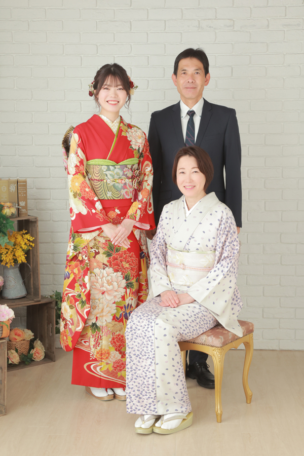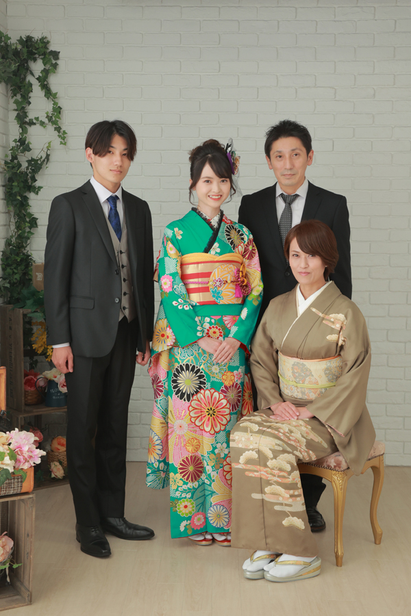 成人式の記念に家族写真もいかがですか?一緒に家族写真を撮影することで家族の良い思い出になりますよ!