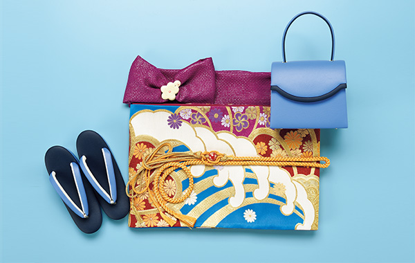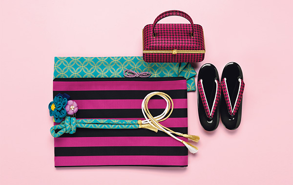 インパクト柄の場合、小物は帯に使われている色からチョイスしたら洗練されたコーディネートの完成!