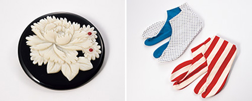 more/シャープな柄には丸い帯留めが好相性。ツートンカラーの足袋もおしゃれ!