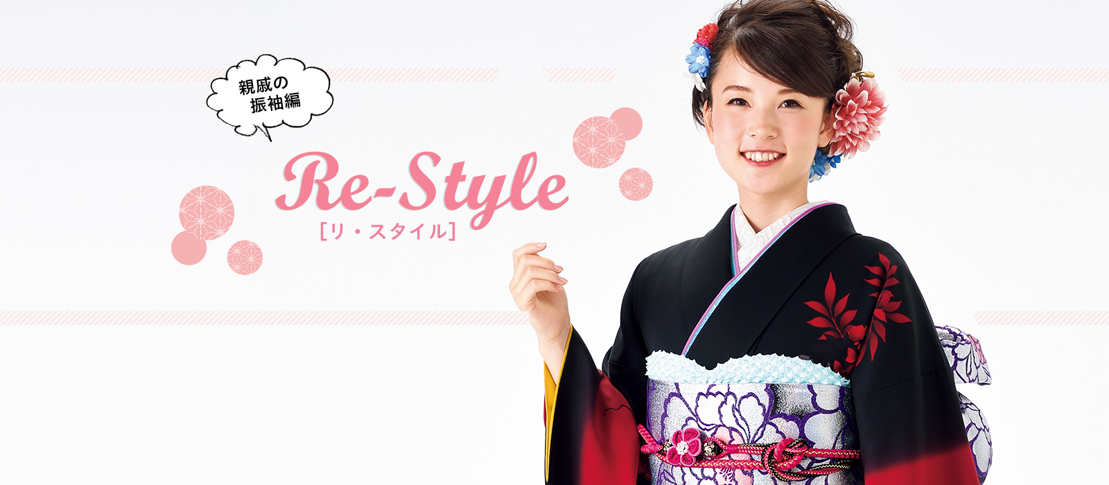 想いでの詰まった振袖を新しい帯や最新の小物をコーディネートして、おしゃれに、今っぽく着こなしませんか?? お母さんの振袖はもちろん、お姉さんや親せきの方が着た振袖を受け継ぐ方もたくさんいらっしゃいますよ♪ 今回は、日本着物システム専属モデル:RENAちゃんが親戚のお姉さんの振袖を借りて振袖のリメイクコーディネートに挑戦しました。