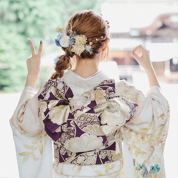 振袖の着こなしは、帯や小物の合わせ方(コーディネート)によってイメージが変わります。