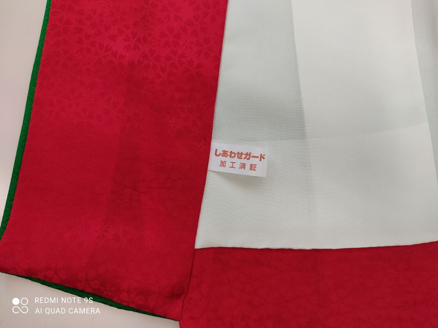 いつまでも変わらない着物の美しさと、仕立て上がりの新鮮な風合いを楽しんでいただくために、あまのやではご購入いただいたお振袖にガード加工をかけさせて頂いております(^o^)