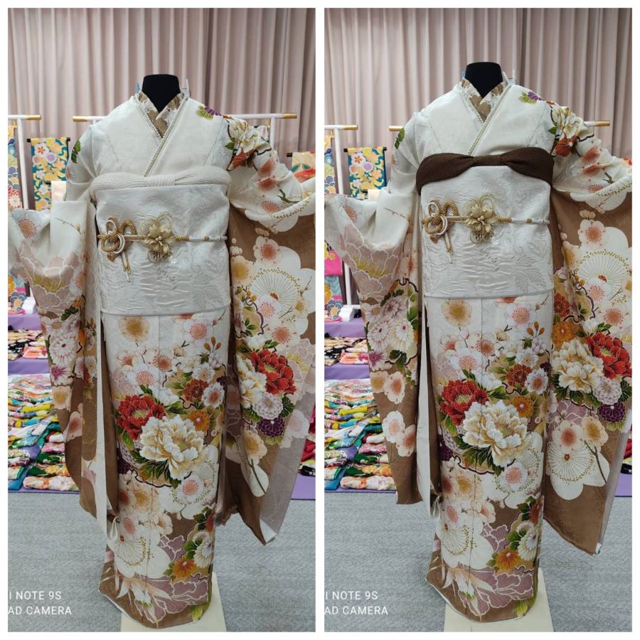 こちらの2枚、帯以外は全て同じ小物を使用しております。帯を変えるだけでもイメージは大きく変わりますよね?