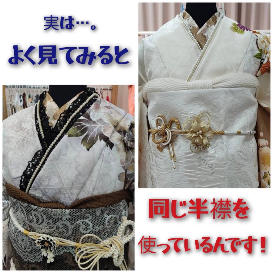 同じ半衿なのに衿元の雰囲気はガラリと違いますよね!