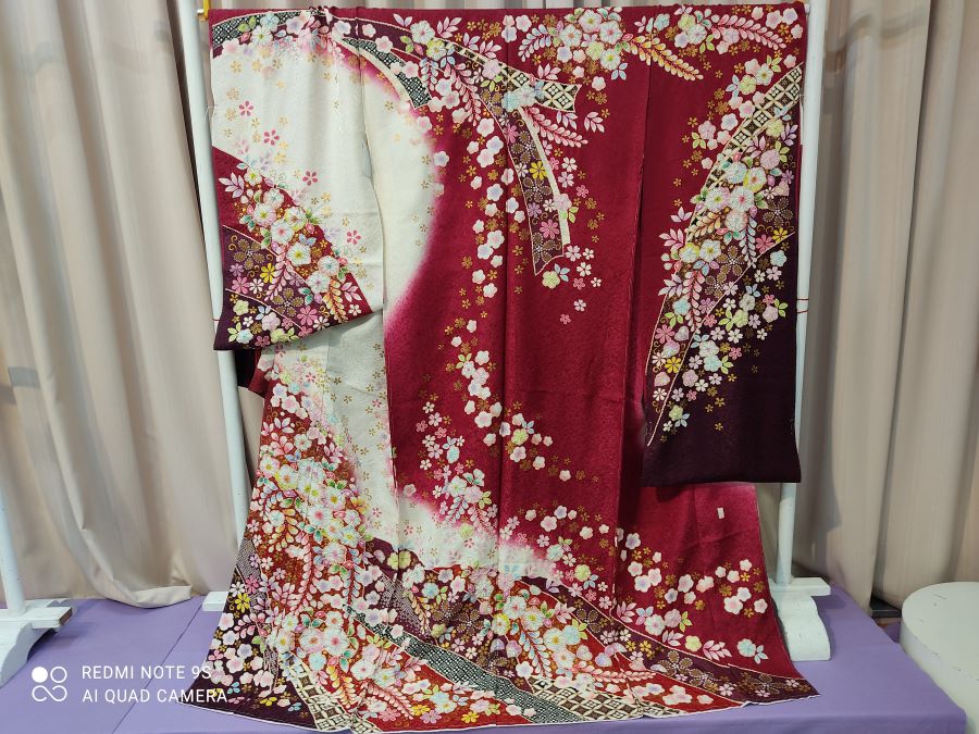 幻の花と呼ばれる「辻が花」のお振袖!!赤から白のグラデーションがとても美しいです!!