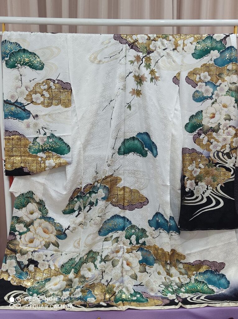 振袖といったら古典柄!!白地に梅や松の模様や流水模様が特徴の古典柄のお振袖です!!古典柄=可愛らしいというイメージがあるかもしれませんが、こちらの振袖は古典柄でもかっこいい振袖です!!