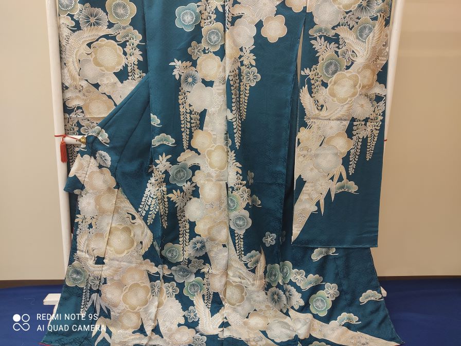 梅の花のデザインが可愛らしいですよね!!「梅」は中国原産の花木で、奈良時代初期に日本にやってきました。厳寒の中でほかの花に先駆けて咲く香り高い梅は中国では逆境に耐える人生の理想とされて日本でも「万葉集」に多く詠まれ、縁起のいい花として愛好されてきました。梅の”毎”の文字は母親を表しますが厳寒の最中、香り高き花を咲かせる梅の姿はまさに子を産み育てる母親の強さ、尊さと重なります。「忍耐」や「力強さ」を表します。松や竹と組み合わせて「松竹梅」とされる縁起の良い花です。梅の花は伝統ある柄ですが、古典柄からモダンまでさまざまな振袖に用いられています。