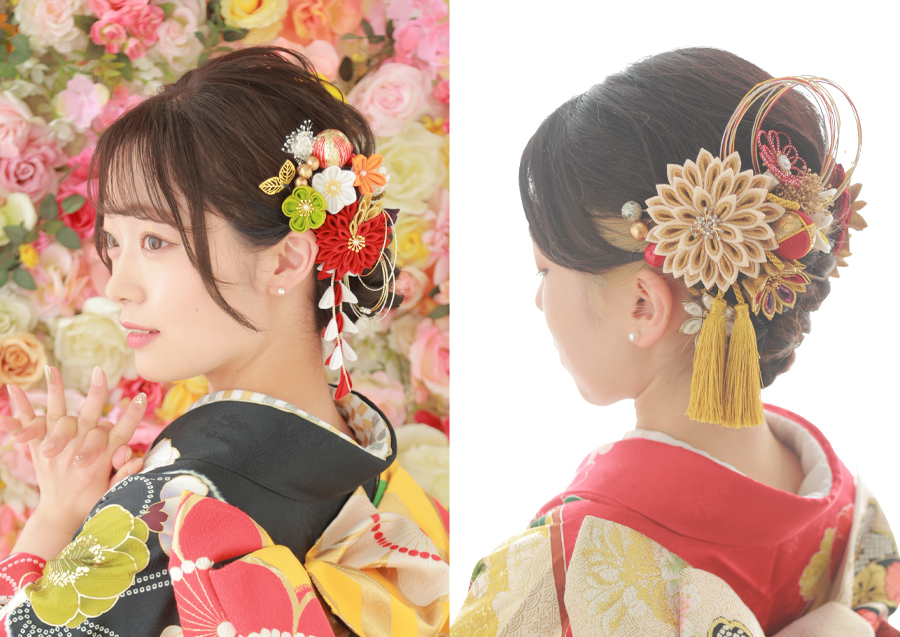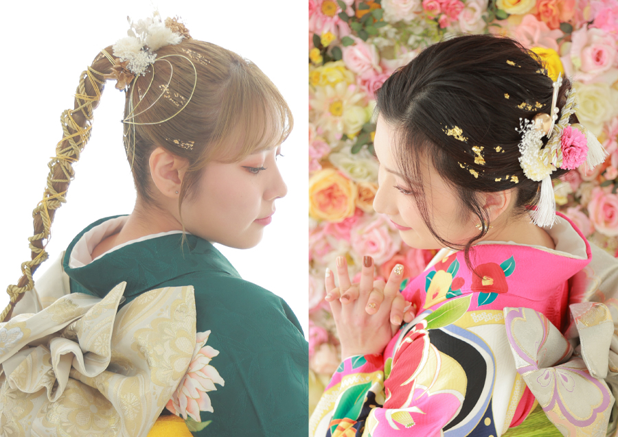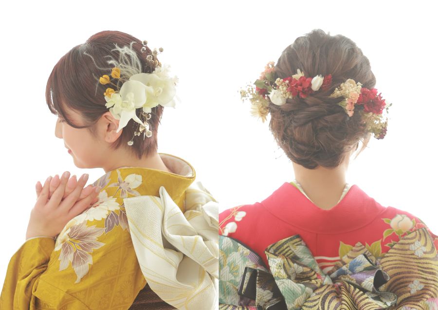 SNSが発展している今、髪型・髪飾りの種類やアレンジ方法は日々増えています。振袖、髪型、髪飾り、メイク…など、なりたいイメージに合わせたトータルコーディネートが大切!