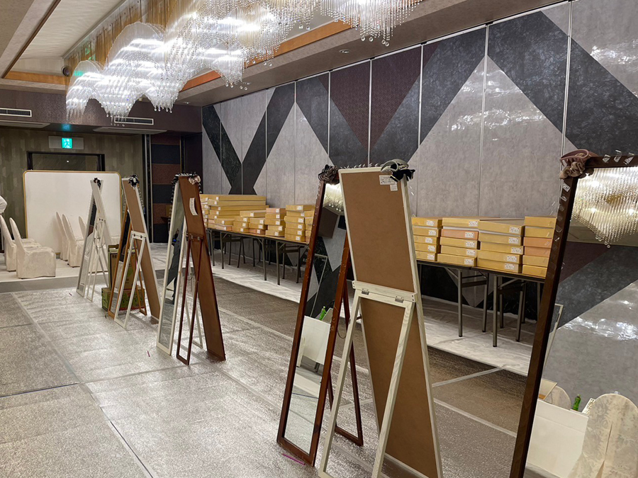 こちらは栃木市にある“栃木グランドホテル”のお支度会場の様子です!たくさんの着物の箱や鏡がずらっと並んでいますね~