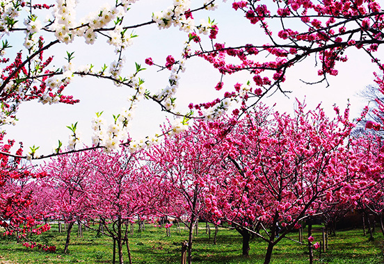 古河総合公園(古河公方公園)では、毎年約1500本ものハナモモが咲き誇ります。一面桃色の林の中は、まさに夢のような桃源郷!振袖姿の記念撮影もオススメです。